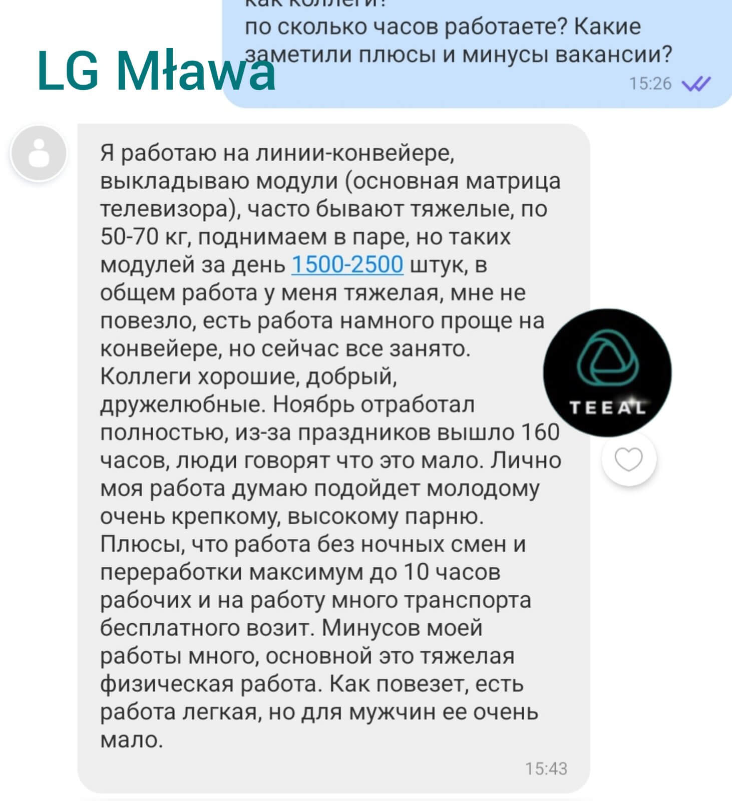 Место работы — 06-500 Mława, ul. LG Electronics 7
