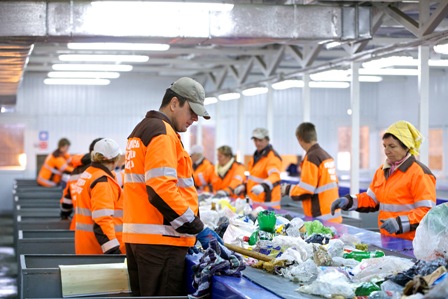 Отбор сырья с ленты и размещение в соответствующий контейнер, уборка сортировочного помещения в конце смены и уборка снаружи здания.
