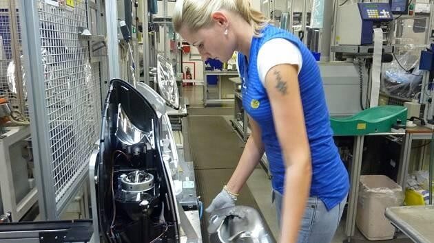 Operator w zakładzie produkującym reflektory, Hella Autotechnik