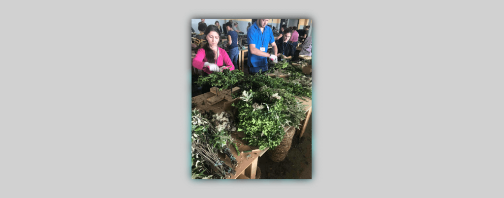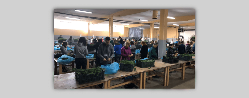 - Подготовка ёлок и других комплектующих для производства, складирование готовой продукции для хранения