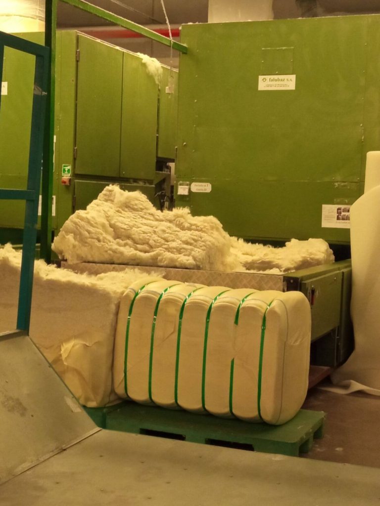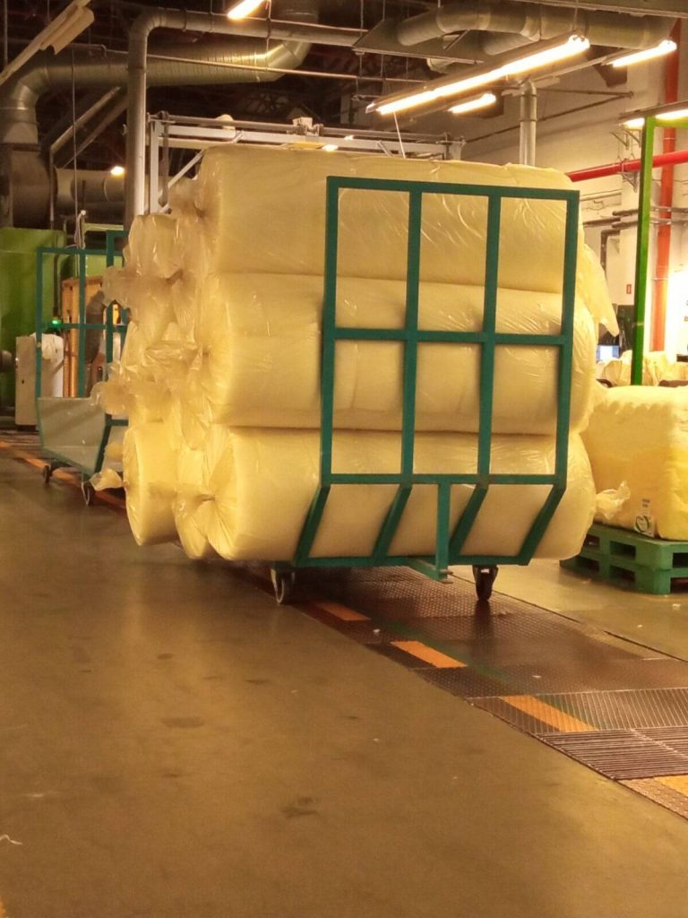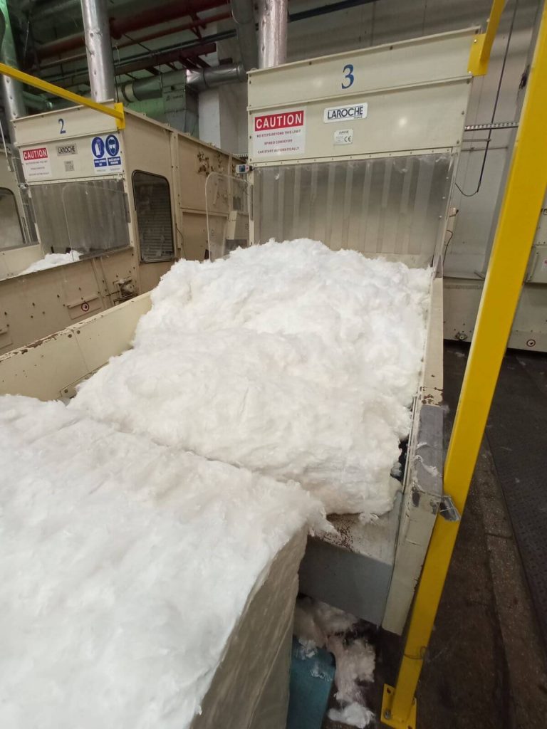 - на рабочие места с помощью вилочного погрузчика доставляются тюки с сырьем