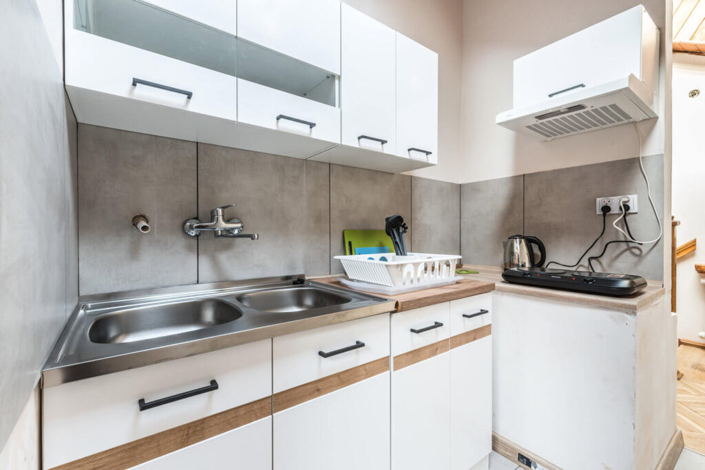 Wszystkie kuchnie z podstawowym wyposażeniem i naczyniami. Pralki są dostępne, pranie jest bezpłatne wszędzie.