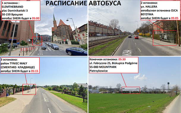 - Pracownicy chodzą pieszo do przystanku autobusowego lub korzystają z transportu publicznego.