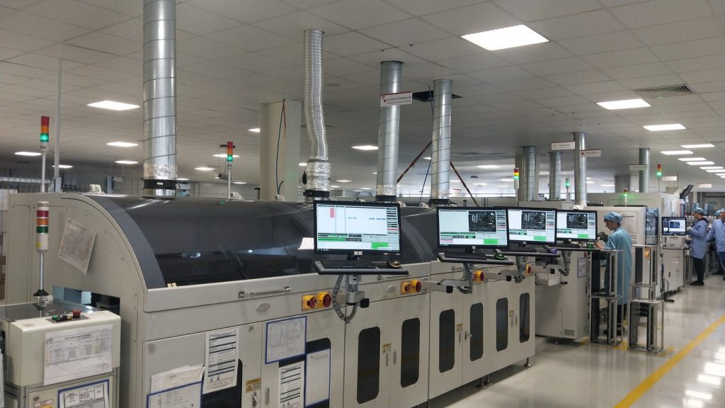 После проверки, печатная плата проходит по линии и попадает в автоматический установщик компонентов.