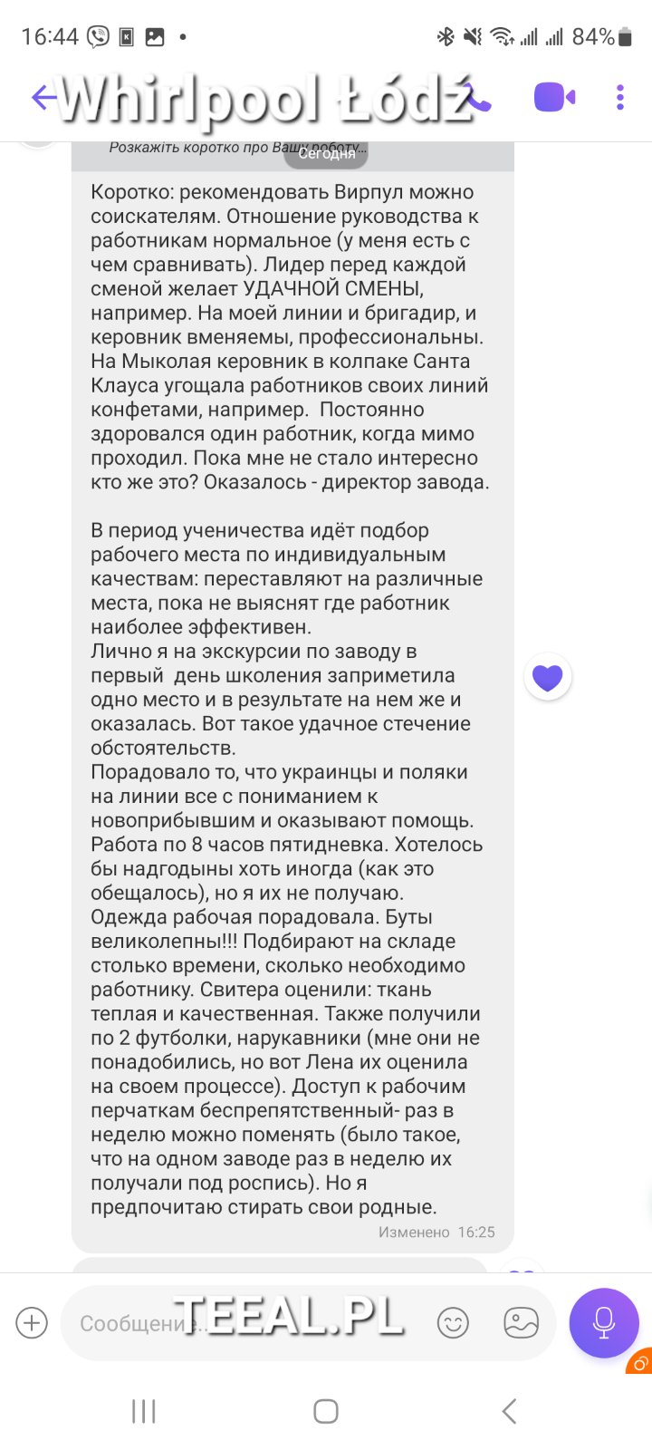 Место работы — Łódź, ul. Dąbrowskiego 216, 93-231