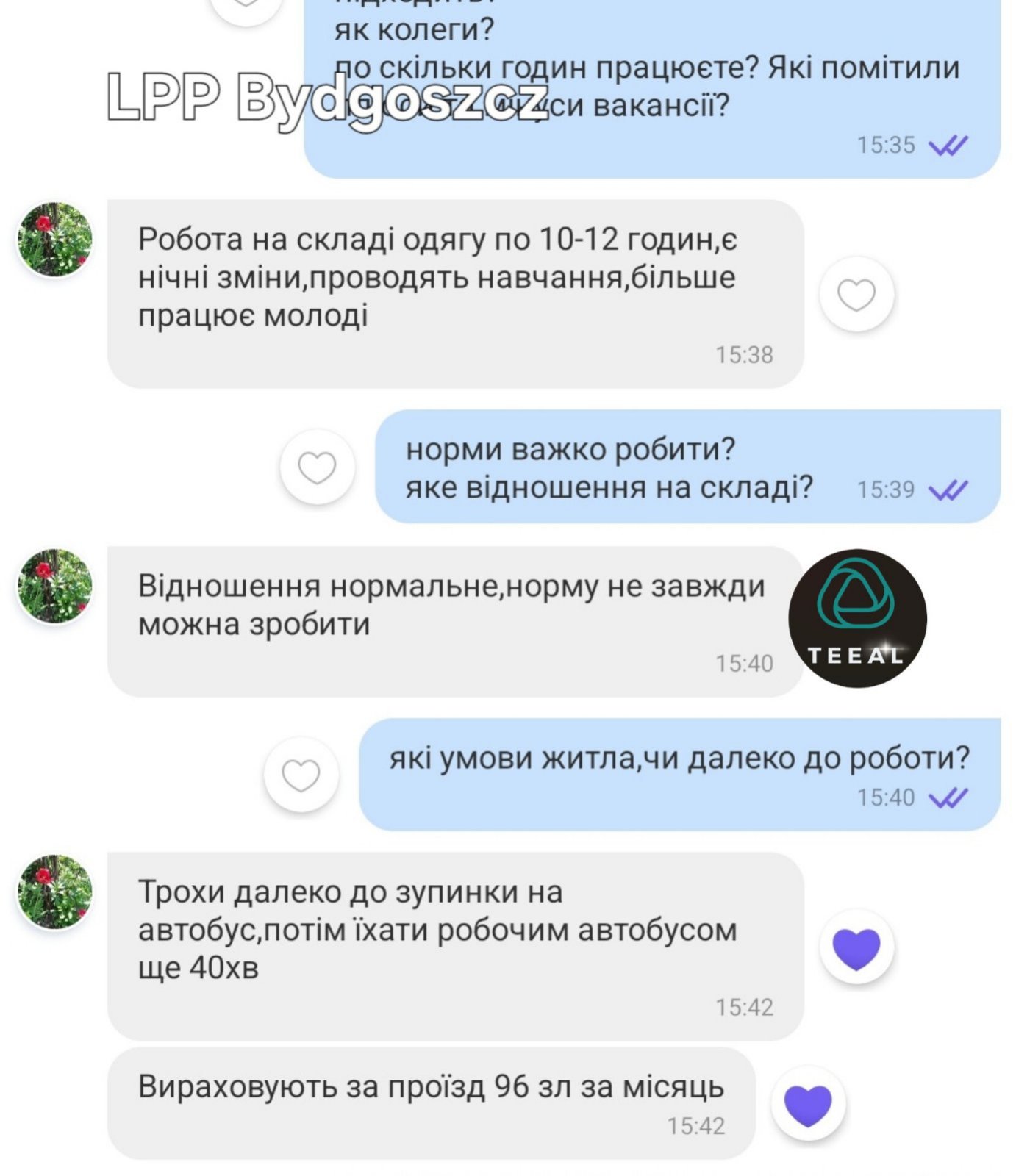 ДОЇЗД: 96 злотих/місяць із вирахуванням із ЗП (при відпрацюванні 250 годин на місяць — доїзд безкоштовний).